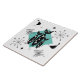 Ein super niedliches Muster aus schwarzen Katzen, atomaren Sternexplosionen und abstrakten Formen, inspiriert durch Retro Mitte des Jahrhunderts Designs in schönen Tönen aquamarin, blau, schwarz, weiß und grau.