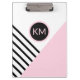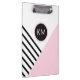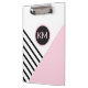 Mit seinem femininen Stil zeitgenössischer Pop Kunst geometrisches Muster und Retro-Gefühl, hat diese Mode-Forward-Clip-Board verschlungene schwarze Streifen und rosa Farbblock mit einem markanten passenden runden Rahmen rund um Ihr Monogramm. Personalisieren Sie die Textvorlage mit Ihrem Monogramm. Weitere passende Büroprodukte sind in diesem stilvollen Design erhältlich. Es ist eine wunderbare personalisierte Wahl für Zuhause, Schule oder Unternehmen.