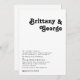 Dieses moderne Retro-Zeichen der traditionellen Hochzeitseinladung ist perfekt für Ihre Vintage, trendige Sommerhochzeit. Die Schrift ist ein stilvoller, schwarzer, schicker 70er Jahre Schriftart, der dieses Design klassische minimalistische Hippie-Villen verleiht. Sie können eigene Grafiken oder Bilder hinzufügen, wenn Sie gewollt haben, um sie anzupassen. Gerne stehen wir Ihnen für Fragen zur Produktgestaltung zur Verfügung.