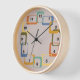 Moderne Formen umgeben die Zahlen dieser Uhr im Retrostil. Die zeitgenössischen Quadrate sind in Retrofarben aus den 50er und 60er gehalten.