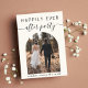 Modernes helles Creme-Ambiente oder private Hochzeitsankündigung und Einladung zum Empfang. Die Vorderseite zeigt Ihr Foto in einem boho-inspiriert Bogenrahmen und "Happily Ever After Party" in einfacher Typografie und einem stilvollen Drehbuch mit Swashes. Fügen Sie Ihre Vornamen und das Hochzeitsdatum bzw. das Empfang hinzu. Auf der Rückseite, personalisieren Sie Ihre Daten und fügen Sie Ihre Namen in einem signaturähnlichen Skript.