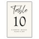 Modernes, helles Hochzeitszeichen mit der Tischnummer "Tisch" in einem schicken Drehbuch, die Tischnummer in eleganter Serifentypografie, und Ihre Namen und Empfang Datum in einfacher Typografie. Erstellen Sie jede Tischnummer und fügen Sie eine nach der anderen in Ihren Warenkorb, dann Karo aus, sobald alle Zahlen in Ihrem Warenkorb sind.
