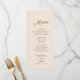 Modernes und stilvolles Hochzeitsempfang mit cremefarbenem Hintergrund, das für Ihre Hochzeitsfarben individuell gestaltet werden kann. Ein Großteil des Textes ist ein eleganter, kursiver Skript-Schriftart. Schriftart- und Schriftart-Farben sind ebenfalls anpassbar. Kontaktieren Sie mich, wenn Sie Hilfe mit Ihrem eigenen Menü wünschen.