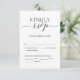 Das ist die wunderschöne moderne Elegant-Kalligrafie, UAWG (Respond) Enclosure Card, in Black Schriftart, wo Sie sie bearbeiten, verändern und nach Ihren Wünschen formatieren können, mit Essensoptionen, reservierten Sitzplätzen, Nummernbetreuung und Songanfrage Option. #TeeshaDerrick