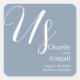 Diese eleganten, romantischen Hochzeitsaufkleber zeichnen sich durch einen staubblauen Hintergrund aus. Der Titel "Uns" wird in einem großen Script-Schriftart an der Spitze gedruckt, oberhalb der Namen der Ehepaare, die heiraten. Die Hochzeitsinformation wird unten in einem raffinierten, modernen, weißen Schriftart gedruckt.