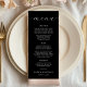 Moderne romantische Schwarze Hochzeit Menükarte