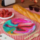 Die modernen Pink Blue Abstrakt Watercolor Paper Teller fügen sich in Ihre Dekoration ein und sind sehr schön dekoriert.