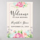 Hochzeitsposter mit hübschem Aquarelldesign. Rosa Blume in einem schönen Bouquet. Cremefarbener Hintergrund.