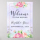 Hochzeitsposter mit hübschem Aquarelldesign. Rosa Blume in einem schönen Bouquet. Lila Aquarell