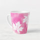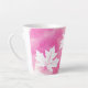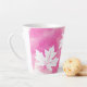 Rosa Aquarellfarben und weißer Ahorn verlasse latte Tasse. Ein wunderschönes Design, das Blätter aus Ahorn in Weiß auf heißen rosa Aquarellplash umfasst.