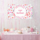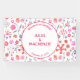 Heller Garten mit modernen pinkfarbenen und orangefarbenen Blume in verstreuten Formen auf weißem Hintergrund. Hübsch und lebendig mit frisch Bohemischem Ambiente. Ein wunderschönes, koordinierendes Hochzeitszeichen, um Ihre Gäste am großen Tag willkommen zu heißen. Originelle Kunst von Nic Squirrell.
