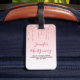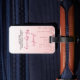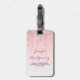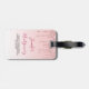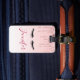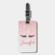 Gepäckanhänger mit modernem, trendigem Design. Für diejenigen, die ein Gefühl von Klasse und Eleganz vermitteln wollen. Entworfen mit einem Hintergrund, der ein Bild von glitzernden, rosa Glitzer-Tropfen hat. Die Erholung des Hintergrunds ist ein zarter pastellrosa Farbverlauf. Eine Abbildung eines Paares schwarzer Wimpern komplettiert das Design.