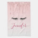 Moderne rosa Glitzer Tropfen und Black Eyelashes Geschirrtuch