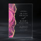 Eine schicke und moderne Hochzeitseinladung mit einem atemberaubenden Rosa- und Goldagate-Design. Diese Einladung aus Premium-Acryl verbindet Eleganz mit zeitgenössischem Stil. Die sanften rosa Farbtöne, gepaart mit luxuriösen Goldakzenten, schaffen eine raffinierte und zeitlose Ästhetik und machen sie zur perfekten Wahl für eine stilvolle und unvergessliche Hochzeitsfeier.