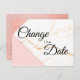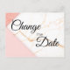 Moderne rosa Gold-Glitzer-Marmor ändert das Datum Postkarte