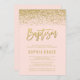 Moderne Rosa Imitate Glitzer Taufe einladen Einladung