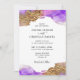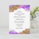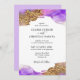 Das moderne Pink Gold Lila Ink Wedding Invitation ist eine luxuriöse und auffällige Wahl für zeitgenössische Hochzeiten. Diese Einladung verbindet eine Mischung aus sanften rosa, lila und metallischen Goldakzenten mit künstlerischen Farbspritzen, die eine ausgeklügelte, aber kreative Ästhetik schaffen. Die Farbpalette weist einen auffallenden Kontrast auf, hebt die elegante Typografie hervor und verlasst einen bleibenden Eindruck. Ideal für ein modernes oder hochmodernes Hochzeitsthema, ist diese Einladung für Gäste mit seinem kühlen, künstlerischen Stil und seinen reichen Farben konzipiert. Ideal für Paare, die eine Touch Glamour und modernen Flair in ihr Hochzeitsgeschoss einbauen möchten. Die Größe ist 5 x 7 Zoll.