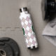 Moderne Wasserflasche mit rosa Muster und grünem Golfer-Namen-Monogramm verfügt über ein weiches rosa und blassrotes Argyle-Muster, das eine zeitlose, vornehme Ästhetik mit einer charmanten femininen Note schafft. Das klassische Diamant-Layout bildet einen ausgewogenen und polierten Hintergrund, während das tiefe grüne Wappen im Schildstil in der Mitte Kontrast und Struktur verleiht. Der monogrammierte Buchstabe und das personalisierte Namensbanner innerhalb des Schildes geben dem Design ein verfeinertes, an die Collegemode inspiriertes Gefühl.