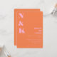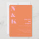 Diese Einladung zeigt einen kräftigen orangen Hintergrund mit dezenten rosa Initialen und moderner Typografie. Das selbstbewusste Layout schafft eine starke visuelle Identität, die den Ton für eine stilvolle, farbenfrohe Feier setzt. Orange und Rosa wirken frisch, leicht retro und elegant, ohne traditionell zu sein. Eine unvergessliche Wahl für Paare, die ihre Hochzeitspapiere von Anfang an modern und kohärent gestalten möchten.