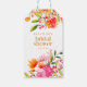 Diese farbenfrohen Geschenkanhänger haben ein leuchtend rosa-orange Wasserfarbe-Blumendesign, das für eine Brautparty personalisiert wurde.