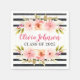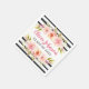 Die Graduation Party Serviette Design für sie ist mit weichem schwarzem und hellrosa Text, der mit dem Namen und der Klasse personalisiert werden kann, Gold gerahmt durch eine hübsche florale Aquarell-Anordnung mit grünem Blattwerk und pastellrosa, rot, pfirsichfarben Frühling Dahlia und Rose Blume. Ein Muster aus weichen schwarzen Chalkboard-Streifen betont den Hintergrund.