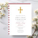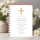 Moderne rosa Streifen kreuzen Girl First Communion Einladung.