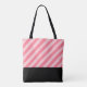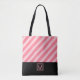 Nimm diese Tasche überall mit ihrem modernen und einfachen Design. Diese Tasche weist ein fett rosa gestreiftes Muster in hellen Farben auf, mit einem schwarzen Block unten. Personalisieren Sie diese Tasche mit Ihrem eigenen Monogramm.