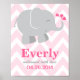 Moderne rosa und graue Elefant Custom Monogram Poster