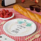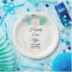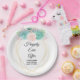 Hochzeitspapier-Teller mit einem Aquarelltuch-Bouquet. Diese köstlichen Blume, Blätter und Krawatten sind in sanften Pastellrosa und minzgrün gehalten. Ein trendiger geometrischer Rahmen mit einem Imitat mit goldenen Rahmen umschließt Ihren Text.