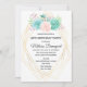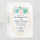 Eine Geburtstagsfeiereinladung mit einem eleganten Imitat Goldfolie Rahmen. Ein pastellfarbenes Aquarellbouquet oben. Die Blume, Blätter und Krabben sind pastellrosa und grün.