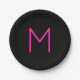 Moderne rosa und schwarze Monogramm Pappteller
