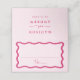 Fügen Sie Ihrem Hochzeitsempfang oder einer besonderen Veranstaltung eine stilvolle Touch mit diesen modernen Wavy Frame-Hochzeitszimmern hinzu! Das Retro-Design zeigt "Table" in einem handgeschriebenen rosa Skript mit Platz für den Namen und die Tischnummer Ihres Gastes. Ein dunkelrosa gewellter Rahmen umgibt das Design, das mit einem hellrosa Hintergrund kontrastiert. Auf der Rückseite der gefalteten Platzkarte finden Sie Ihre Namen und Ihr Hochzeitstag in fett rosa Schrift.