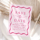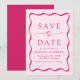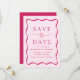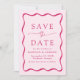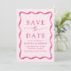 Mit unserer Modern Wavy Frame Hochzeit können Sie Ihre Hochzeit im Stil verkünden und die Termine sparen! Das Design ist mit Namen und Hochzeitsdetails gerahmt, die durch einen dunkelrosa Wavy-Rahmen kontrastiert mit einem hellrosa Hintergrund. Diese exquisite Mischung aus modernem und Retro-Design sorgt dafür, dass Ihr Save the Date nicht nur eine Erinnerung Ihrer bevorstehenden Feier ist, sondern ein hochgeschätzter Sake, der das Wesen Ihrer Liebe festlegt.