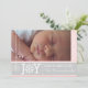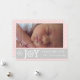 Moderne rosa, Zickzack graue Weihnachtsfeiertage elegante und stilvolle Flachbild-Karte mit hellrosa und weiß Zickzack Zickzackmuster, eine graue Band mit dem Text "Joy Peace and Liebe" mit einem Schneeflocken anstelle des Buchstabens "O" im Wort Freude, Ihre Namen und zwei hängende weiße Weihnachtsschmuck oder Kugeln .