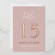Moderne rosafarbene Hochzeitsfeier-Tischnummer Ros Folieneinladung