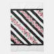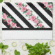 Ein schönes und farbenfroh modernes Küchentuch, das in schwarz und mit rosa Rosen Streifen geschmückt ist