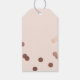 Rose Gold Konfetti Geschenketiketten haben überlappende Konfetti Kreise in der Rose Goldfolie auf einem rot rosa Hintergrund. Ideal für Geschenkgutscheine, Geburtstagsgeschenktaschen oder Vorzüge bei Brautpartys oder Babyduschen. Klicken Sie auf Bearbeiten, um es anzupassen.