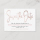 Moderne Rose Gold Foil Script Save the Date Begleitkarte