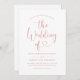 Moderne Rose Gold und Weiß (Farbmodifikation) Einladungen zur Hochzeit mit stilvollem Typografie-Design mit schick kalligraphischer Schrift und Herzakzent. Der einfache und elegante Text, der personalisiert sein kann, um Gäste zu Ihrer Hochzeitsfeier einzuladen, inklusive der Namen der Paare und alle wichtigen Einzelheiten der Hochzeitsfeier.