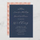 Moderne Rose Gold Navy Blue Elegante Script Hochze Einladung