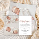 Moderne Rose Gold Script Baby 3 Foto Collage Dankeskarte