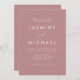 Einfache und elegante Einladungen für eine Hochzeit mit einem weißen, handgeschriebenen Drehbuch, kombiniert mit moderner Schrift mit einem staubigen Hintergrund der Rose. Personalisieren Sie die Front der minimalistischen Hochzeitseinladung mit Ihrem Namen und Ihre Hochzeitsdetails. Personalisieren Sie die Rückseite der Einladung mit Hochzeitsdetails wie Empfang-Informationen, Hotel-Unterkünfte, UAWG-Instruktionen und Hochzeitswebsite. Fügen Sie Ihren Wunschwebseiten-Link in die beiliegende QR-Code-Vorlage ein, damit Ihre Gäste ganz einfach online UAWG und weitere Hochzeitsinformationen erhalten. Die staubige Rose-All-in-One-Hochzeitsfeier ist die perfekte Wahl für moderne Hochzeiten.