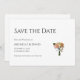 QR-Code Floral Schwarz und Weiß Save the Date Karte, mit einem rosa Rosendesign und einfachen Typografie. Mit anpassbarer schwarzer Schrift können Sie Ihre eigenen Informationen hinzufügen. Wenn Sie diese Funktion verlassen haben, löschen Sie den Text im Feld für den QR-Code. Dieses minimale Design ergänzt Ihre Hochzeitsplanungstätigkeiten hervorragend.
