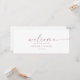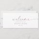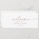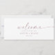 Diese moderne Rose hängt Sitzkarten Willkommenskopf ist perfekt für eine minimalistische Hochzeit. Das schlichte rosa Rosa Rosengold-Design zeichnet sich durch eine einzigartige industrielle Schrift mit modernem Boho-Stil aus. Anpassbar in jeder Farbe. Behalt das Design minimal und elegant, wie es ist, oder personalisiere es durch Hinzufügen von eigenen Grafiken und Kunstwerken. Die Karte druckt auf der Vorder- und Rückseite (beidseitig). Bitte Karo der Auflistung für die koordinierenden Tischnummer-Kartenkarten.