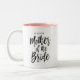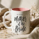 Unsere moderne und trendige Bürstenmutter der Brautkaffee-Tasse ist ein perfektes Geschenk für die Brautmutter. Das Design zeigt die "Mutter der Braut" in einem modernen Skript-Schriftart im Stile eines Pinsels. Imitate Rose Goldherzen werden in Braut zum "I'" hinzugefügt. Passen Sie das Hochzeitstermin an.