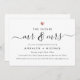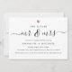 Diese minimale Einladung glänzt durch ihre Einfachheit. Eine schöne Schrift mit Schnörkeln lautet "The Future Mr. and Mrs." neben Ihren persönlichen Feierlichkeiten Details in der modernen Typografie. Oben sitzt ein zartes Imitat Rose goldenes Herz.