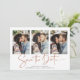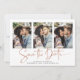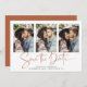 Moderne handgeschriebene Save the Date Multiple-Foto-Card in Rost-Terrakotta und Weiß in einem eleganten Schriftart, der ein romantisches handgeschriebenes Gefühl hervorruft. Entwickelt um drei Ihrer bevorzugten Foto für zusätzliche Anpassungen zu verwenden. Fügen Sie einfach Ihre Namen und Daten für ein wirklich personalisiertes Design hinzu. Bitte kontaktieren Sie uns unter cedarandstring@gmail.com , wenn Sie Hilfe beim Design oder den passenden Produkten benötigen.
