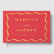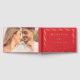 Fügen Sie Ihrer Hochzeitsfeier eine personalisierte, skurrile Touch mit diesem Gästebuch des Modernen Roten und Gold Foil Wavy Frame Fotos hinzu! Das Design zeigt die Namen des Paares und das Hochzeitdatum in Folienschrift, umgeben von einem gewellten Rahmen mit rotem Hintergrund. Fügen Sie Ihren eigenen Text in den Rücken der Folie Hochzeitstorch. Auf der Rückseite des Retro-Gästebuches wird Ihr horizontales Foto angezeigt.