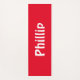 Dieses moderne Design ist ein roter und weißer Yogamat und weist einen roten Hintergrund mit einem in weißem, trendigem Text geschriebenen Namen auf. Ideal für ein Training, bestellen Sie noch heute Ihre!
