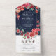 Moderne Rote Rosen Blumenmarinebräu All In One Einladung